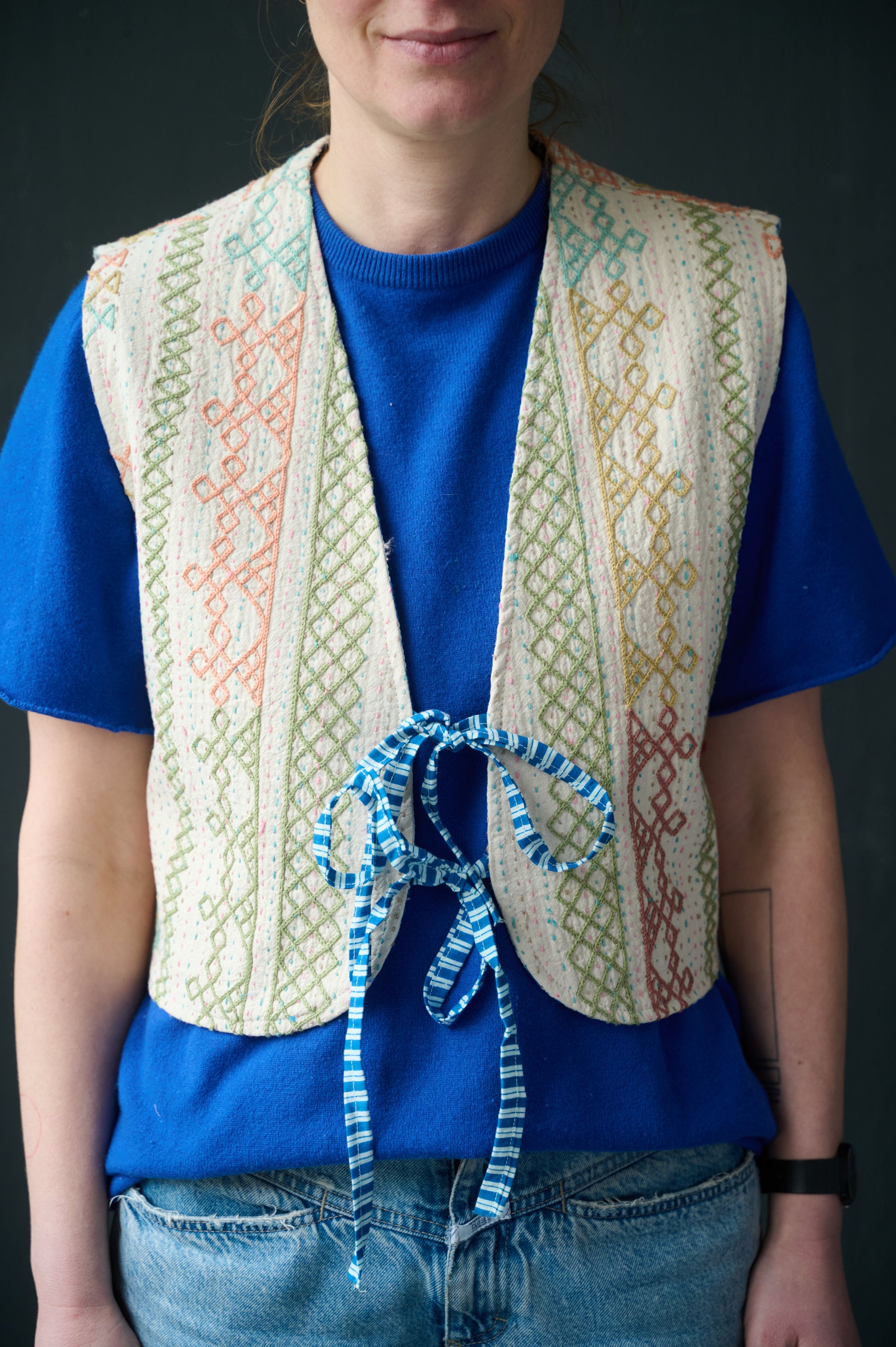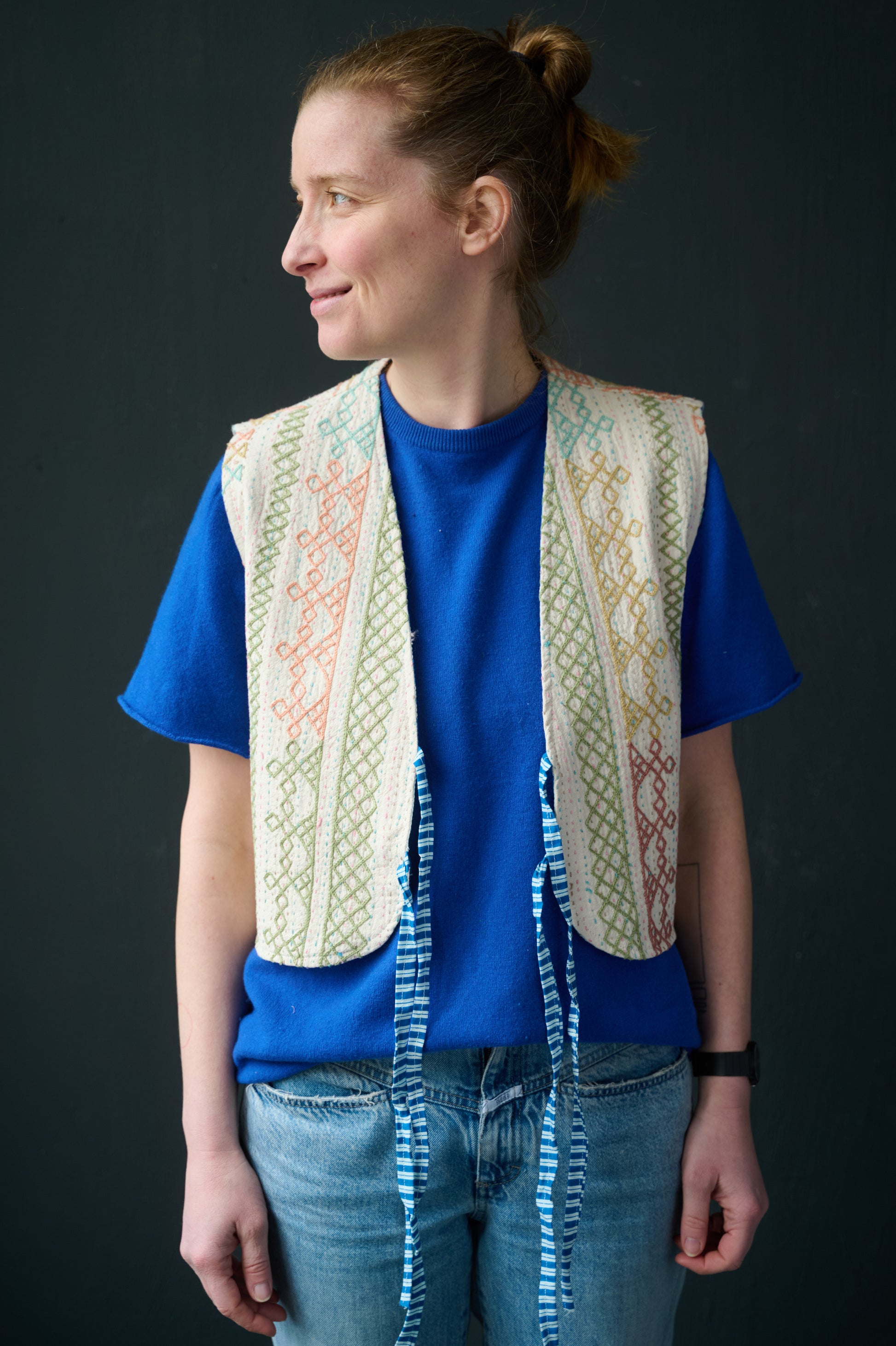 Einzigartige handgenähte bestickte Suzani Weste aus altem Wandteppich