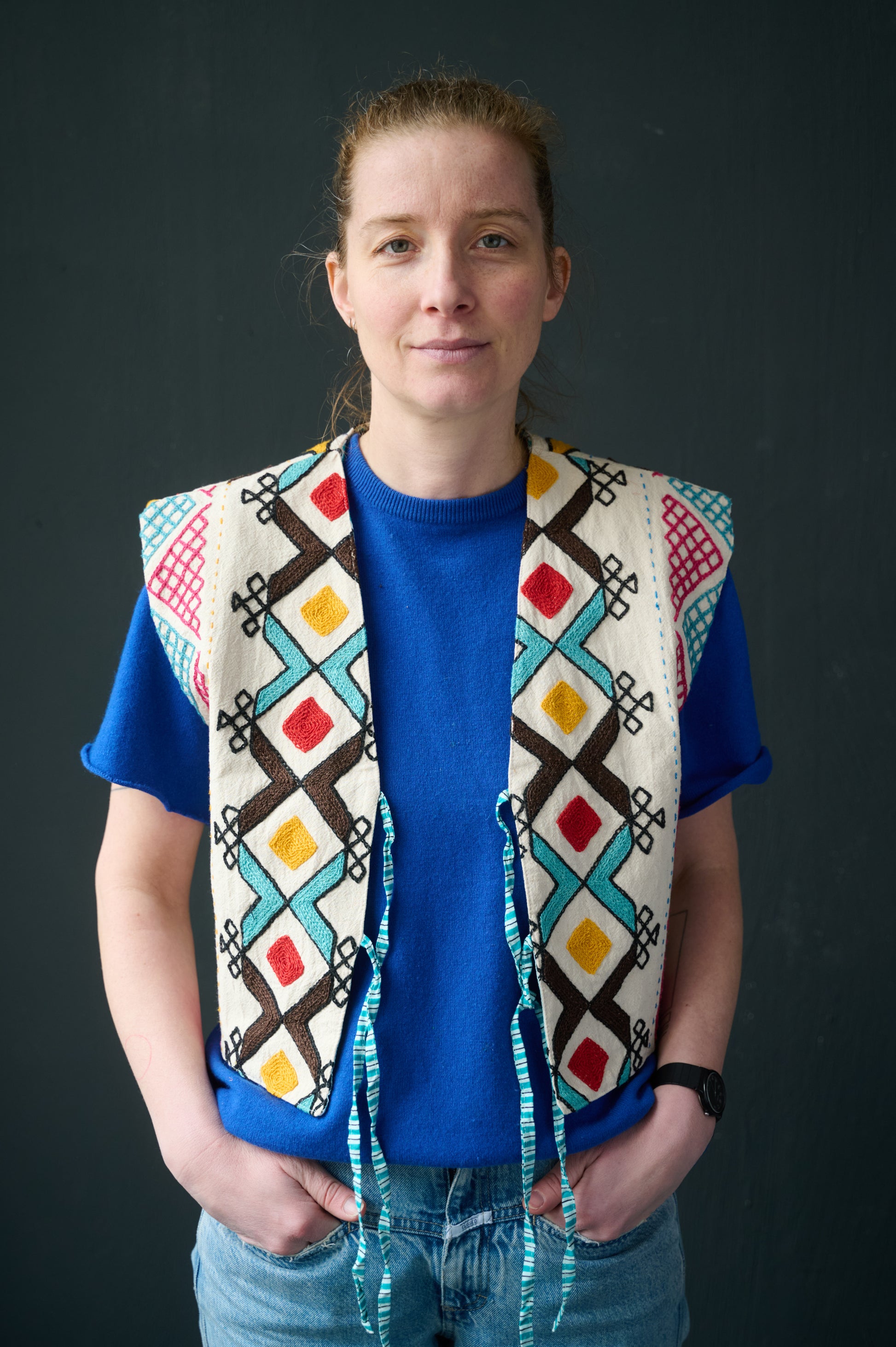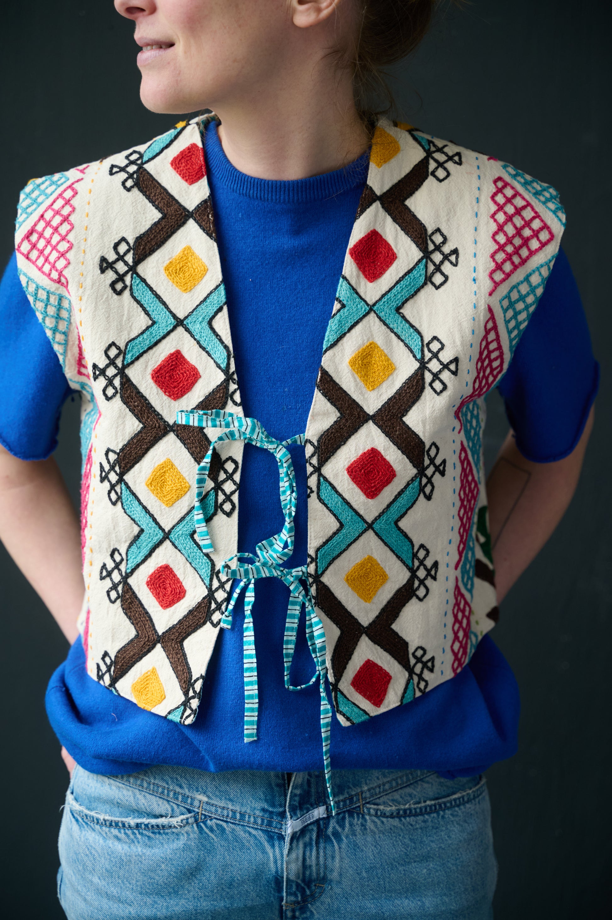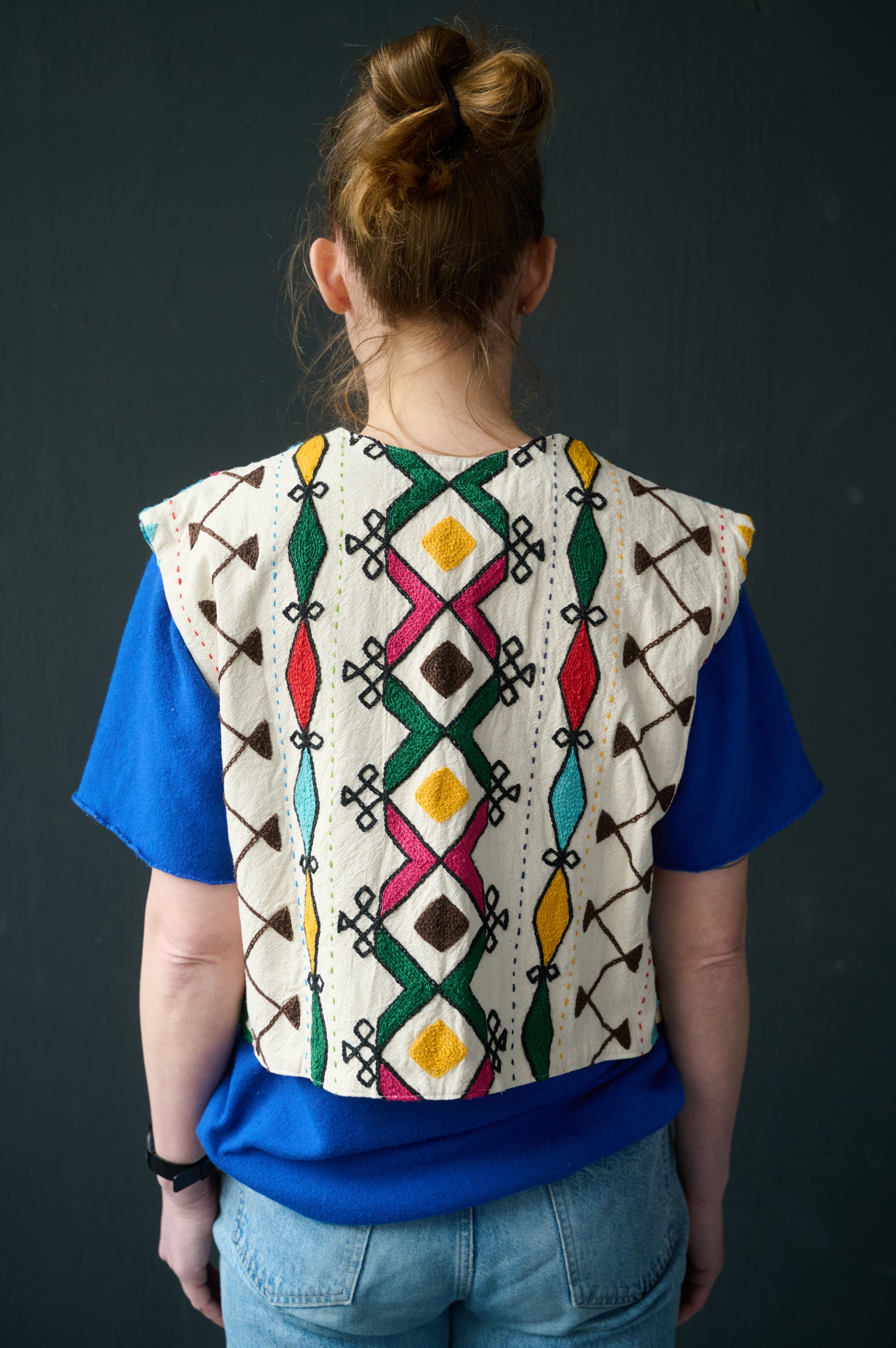 Einzigartige handgenähte bestickte Suzani Weste aus altem Wandteppich