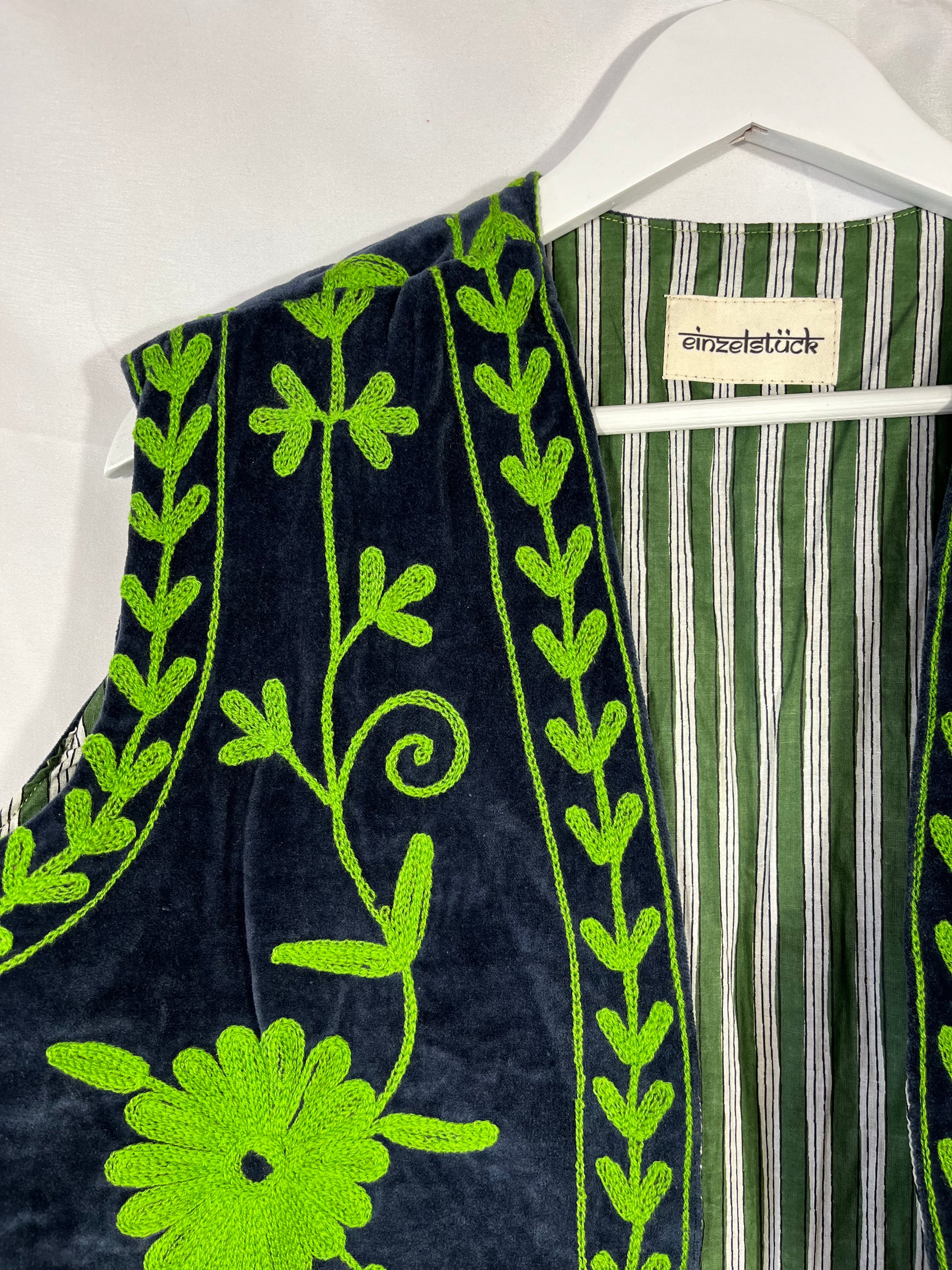 Einzigartige handgenähte bestickte Velvet Suzani Weste aus altem Wandteppich