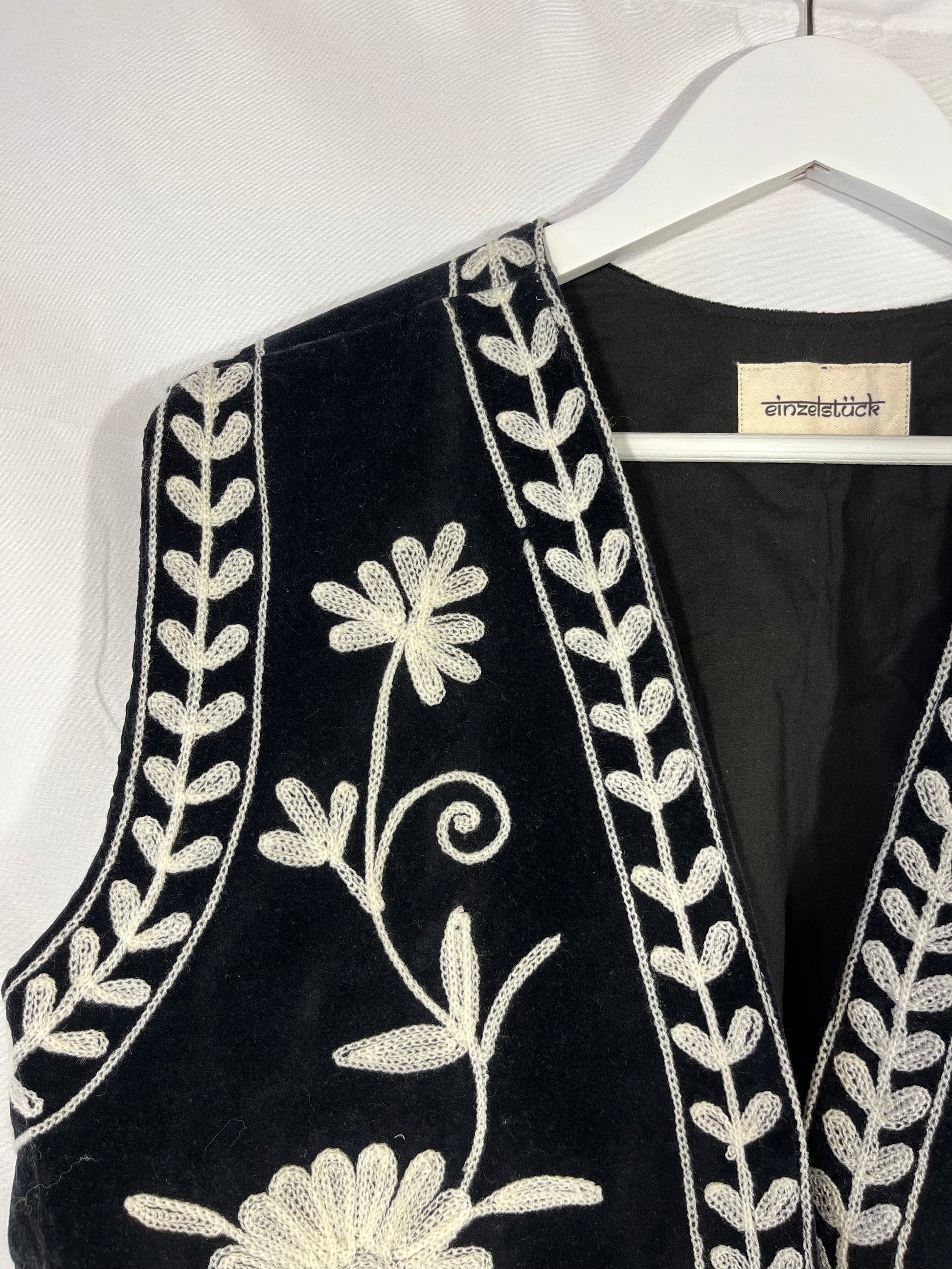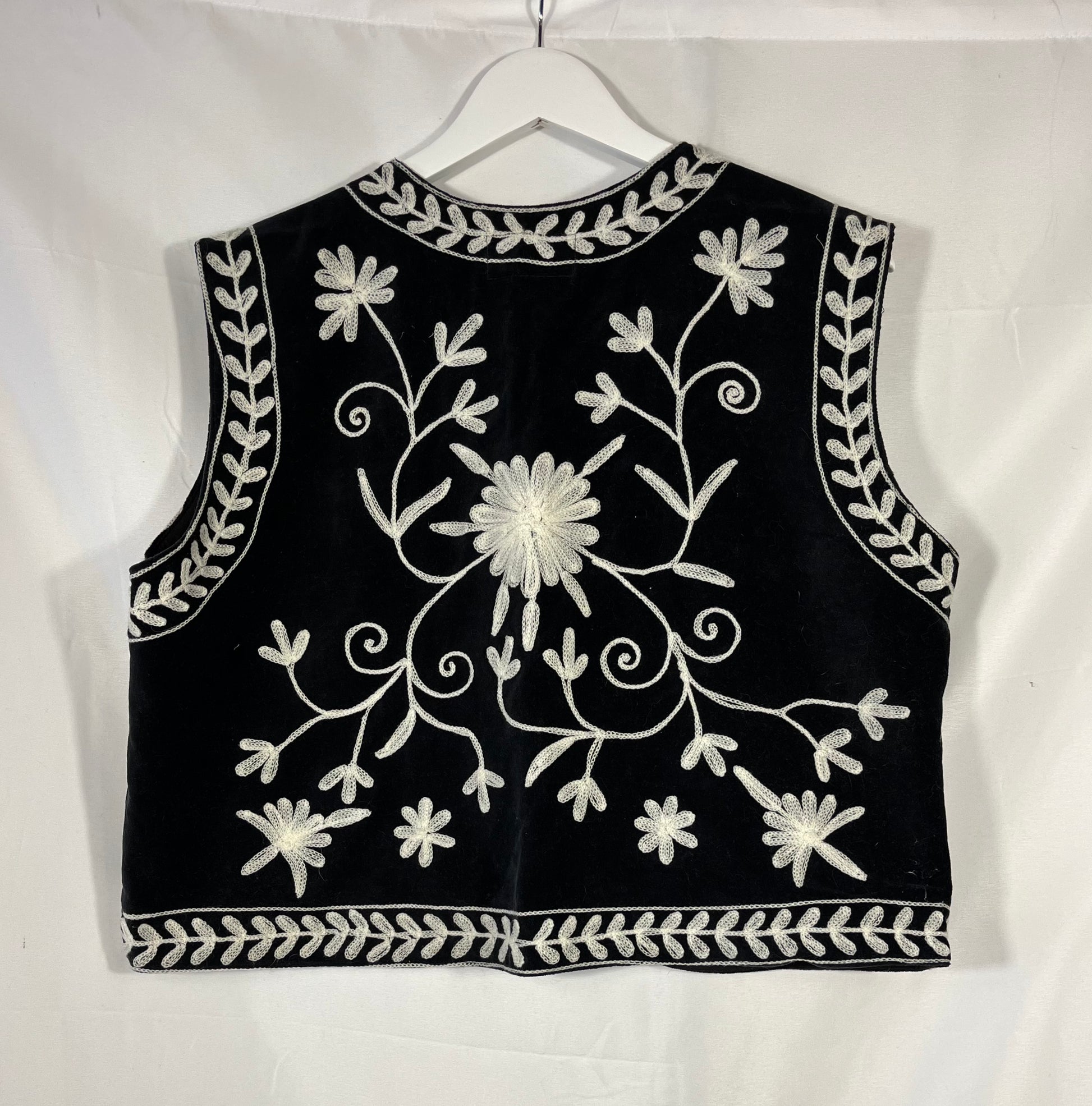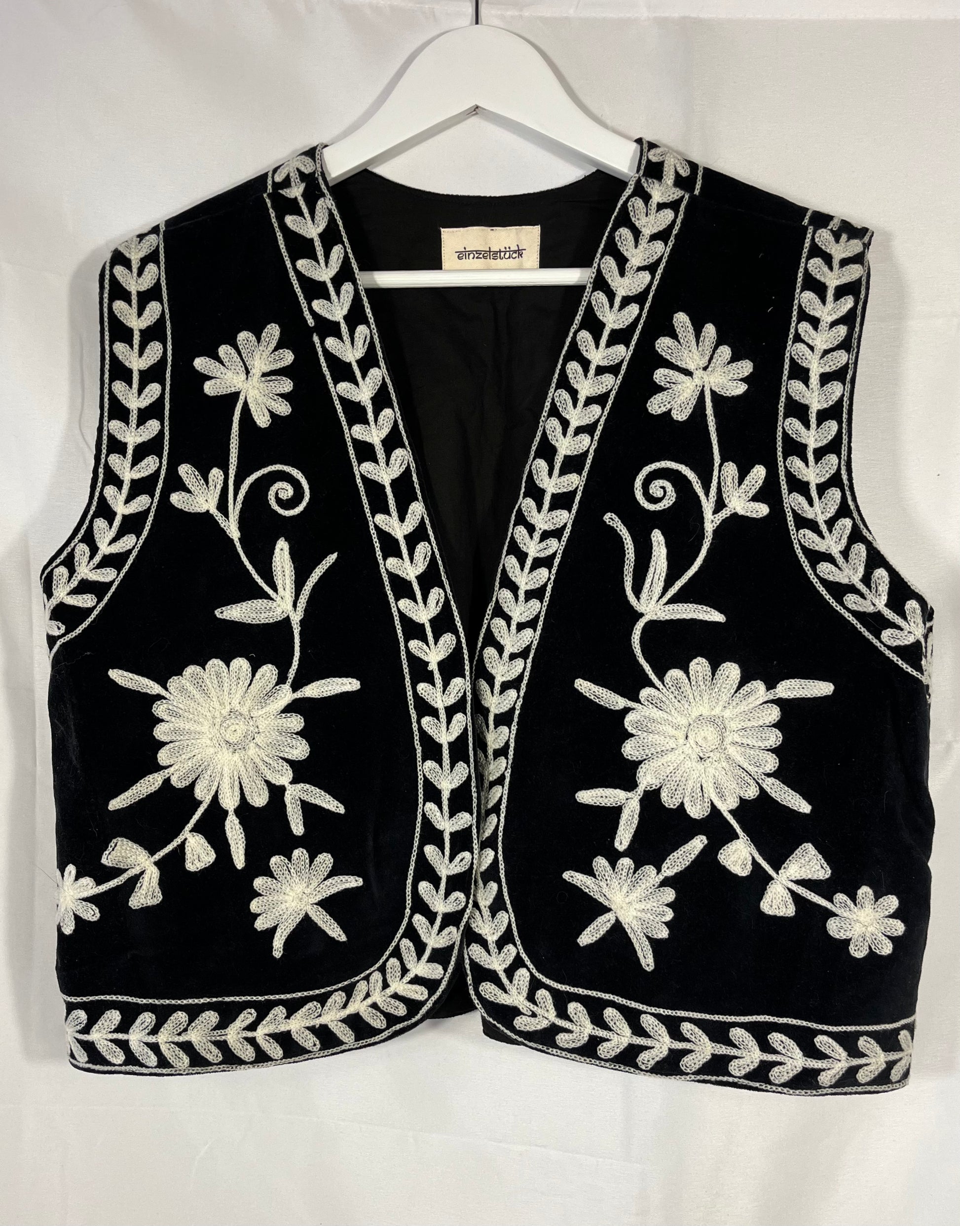 Einzigartige handgenähte bestickte Velvet Suzani Weste aus altem Wandteppich